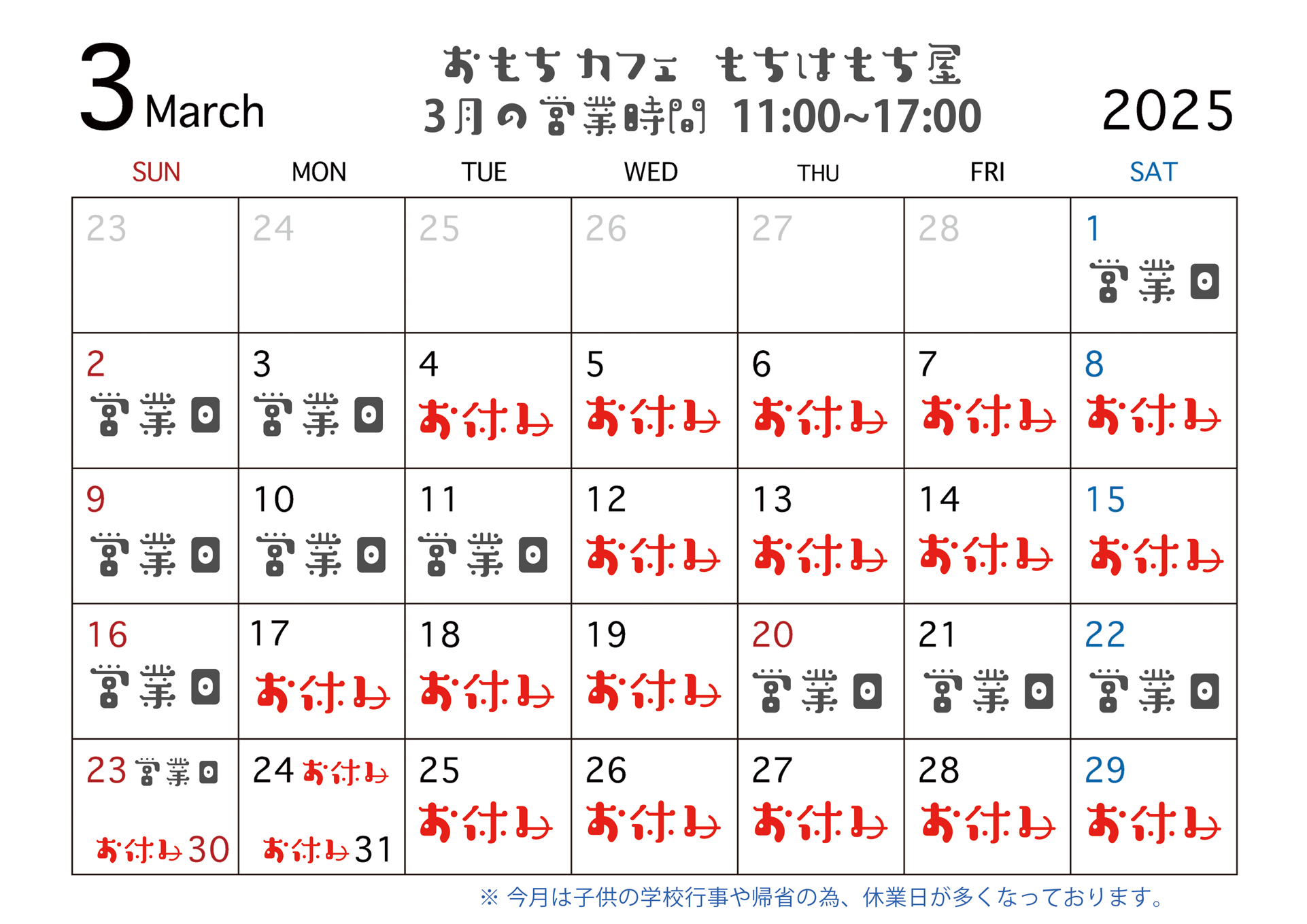 2023/1/7〜1/9は都合により臨時休業させていただきます。